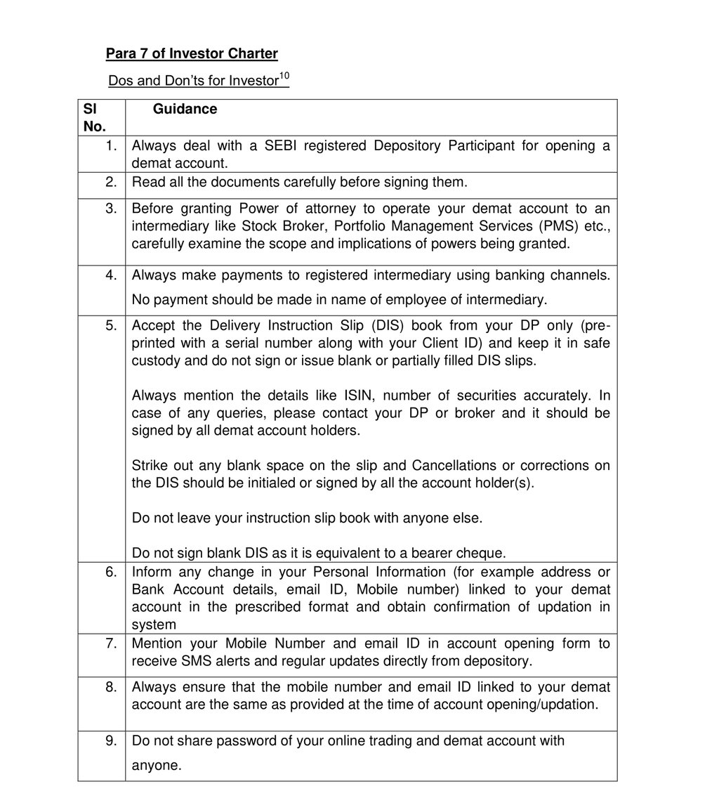 To always keep ‘protection of investors’ interest’ as goal while providing service.