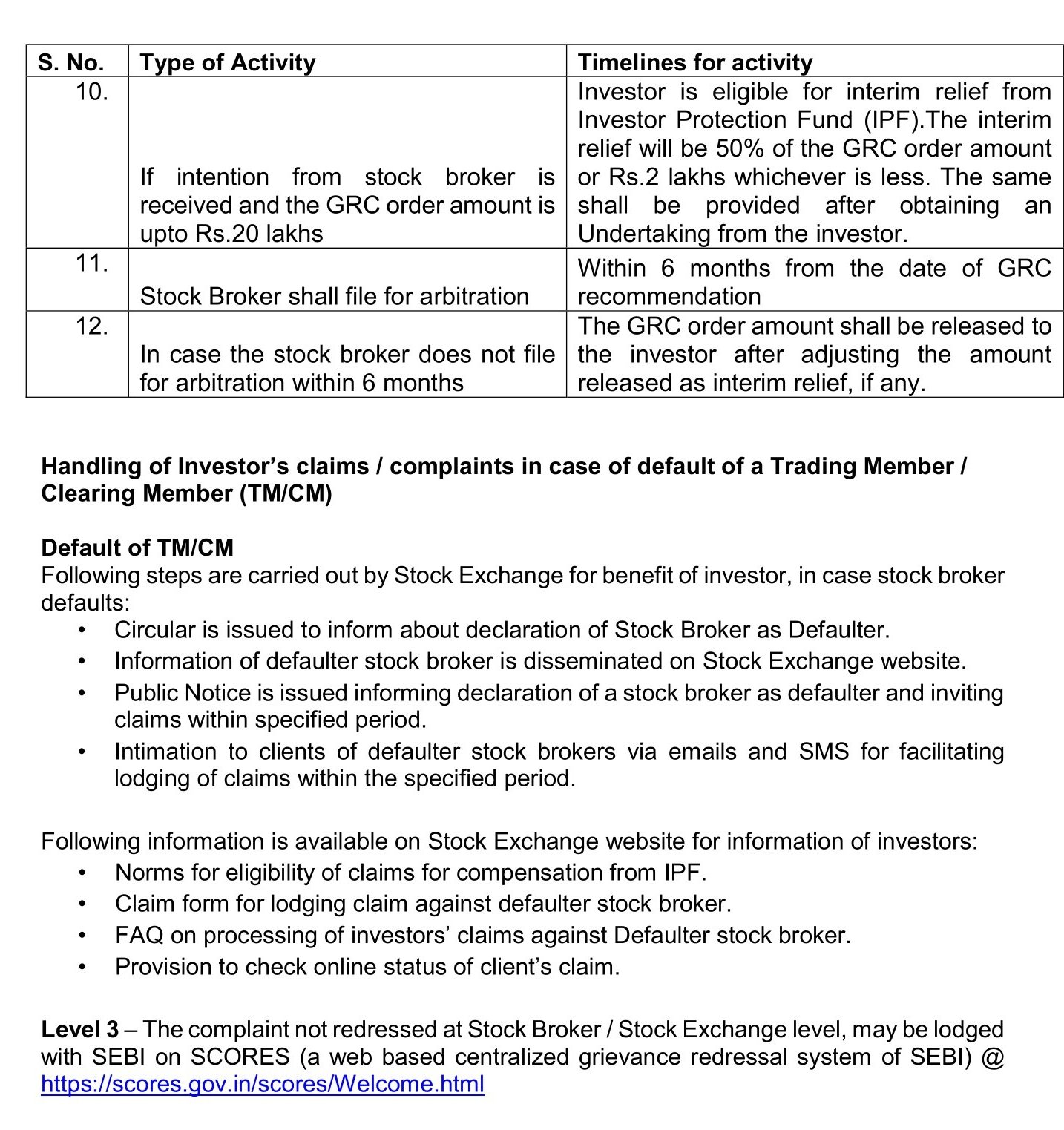 If intention from stock broker is received and the GRC order amount is upto Rs.20 lakhsInvestor is eligible for interim relief from Investor Protection Fund (IPF).The interim relief will be 50% of the GRC order amount or Rs.2 lakhs whichever is less. The same shall be provided after obtaining an Undertaking from the investor.