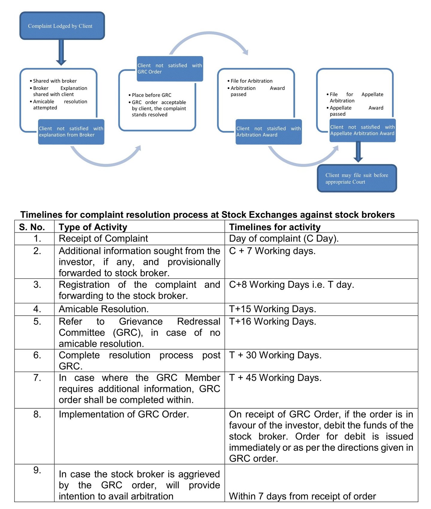 Timelines for complaint resolution process at Stock Exchanges against stock brokers