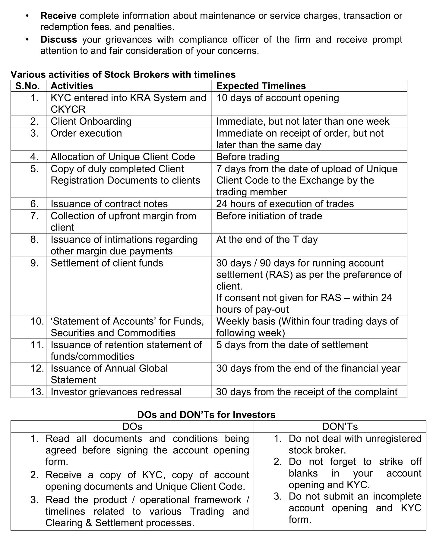 Registration of the complaint and forwarding to the stock broker.C+8 Working Days i.e. T day.