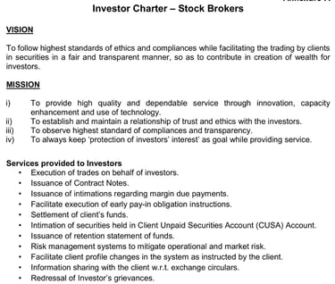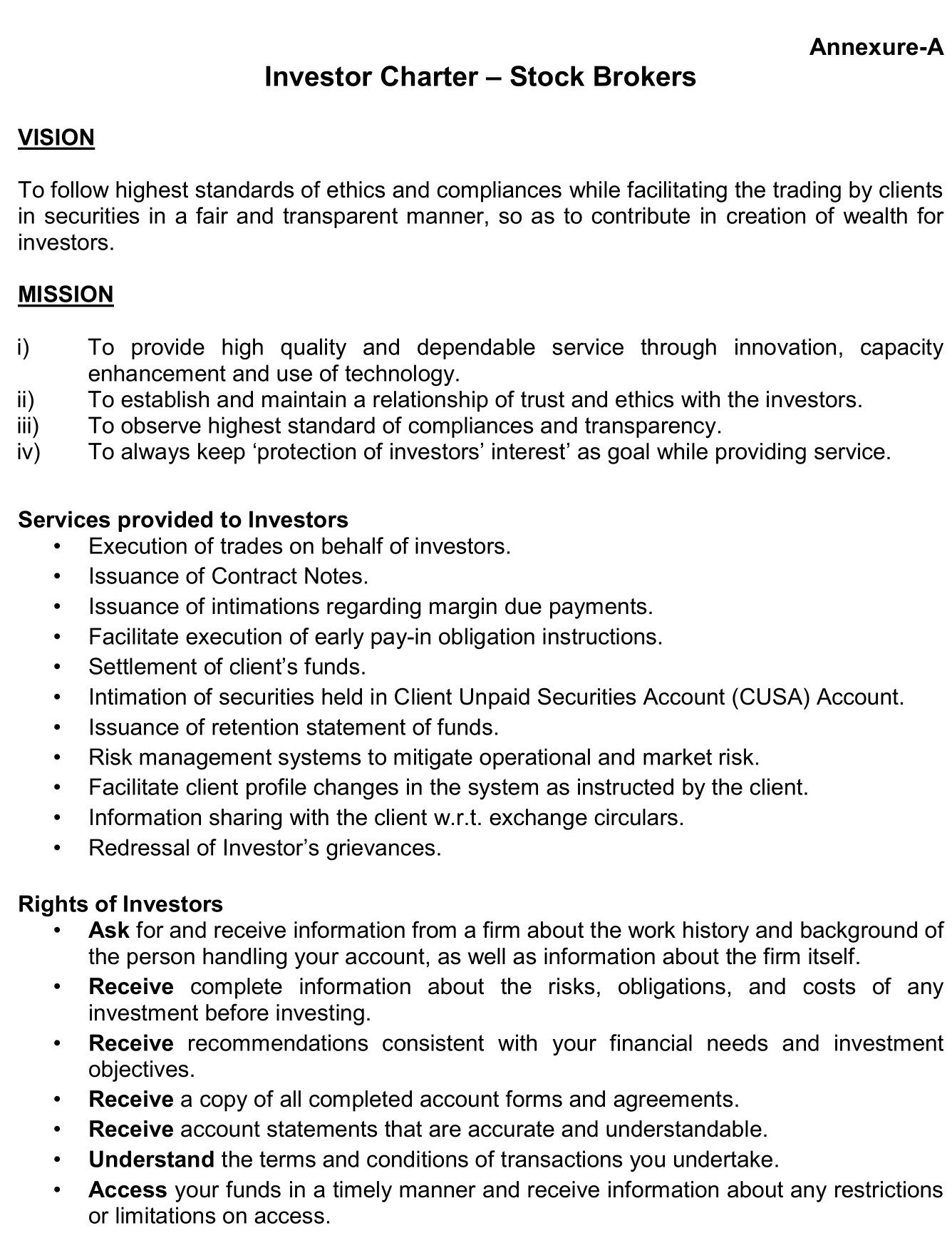 To follow highest standards of ethics and compliances while facilitating the trading byclientsin securities in a fair and transparent manner, so as to contribute in creation of wealthforinvestors.