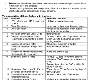 11.Issuance of retention statement of funds/commodities 5 days from the date of settlement
