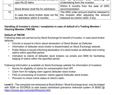 Stock Broker shall file for arbitration Within 6 months from the date of GRC recommendation